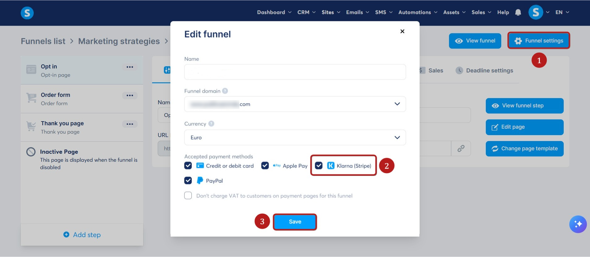 V tomto článku sa dozviete, ako aktivovať platby Klarna pre vaše funnels.
