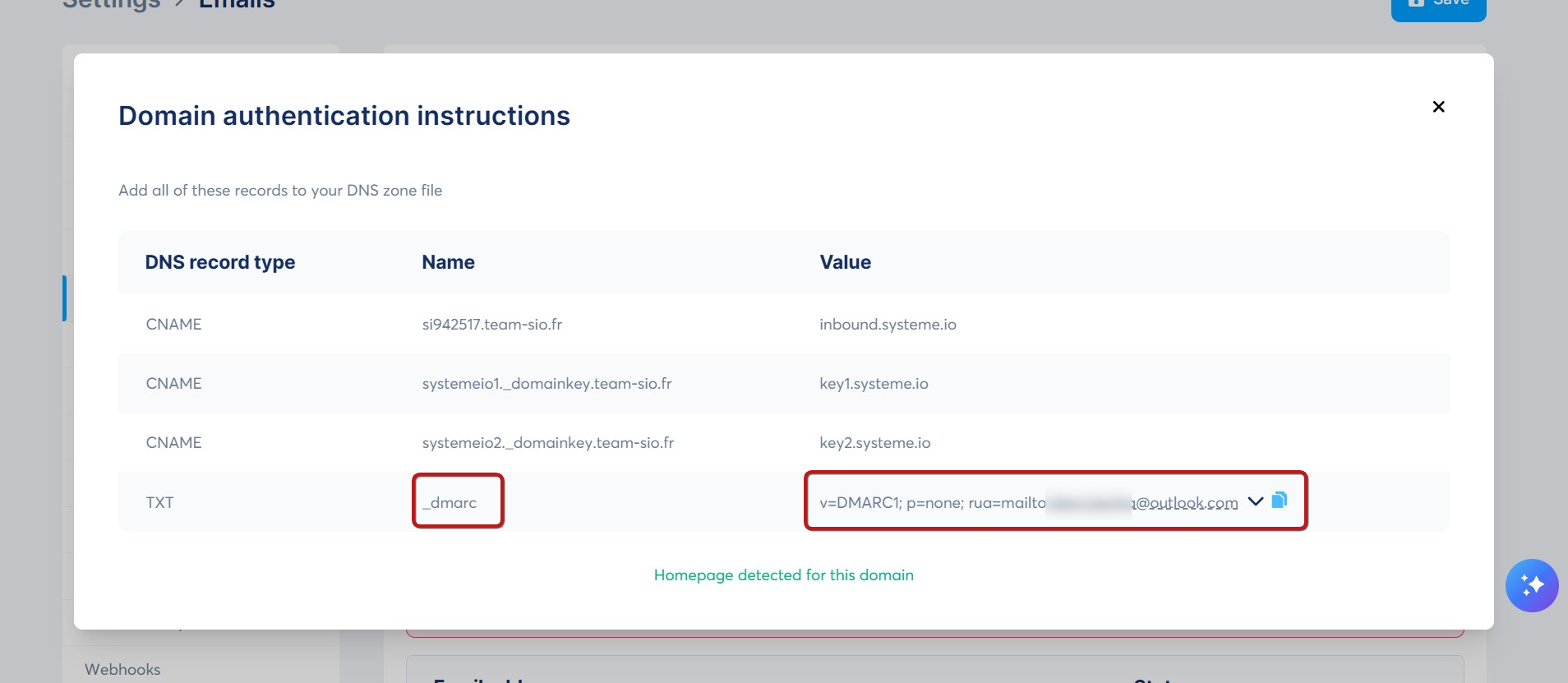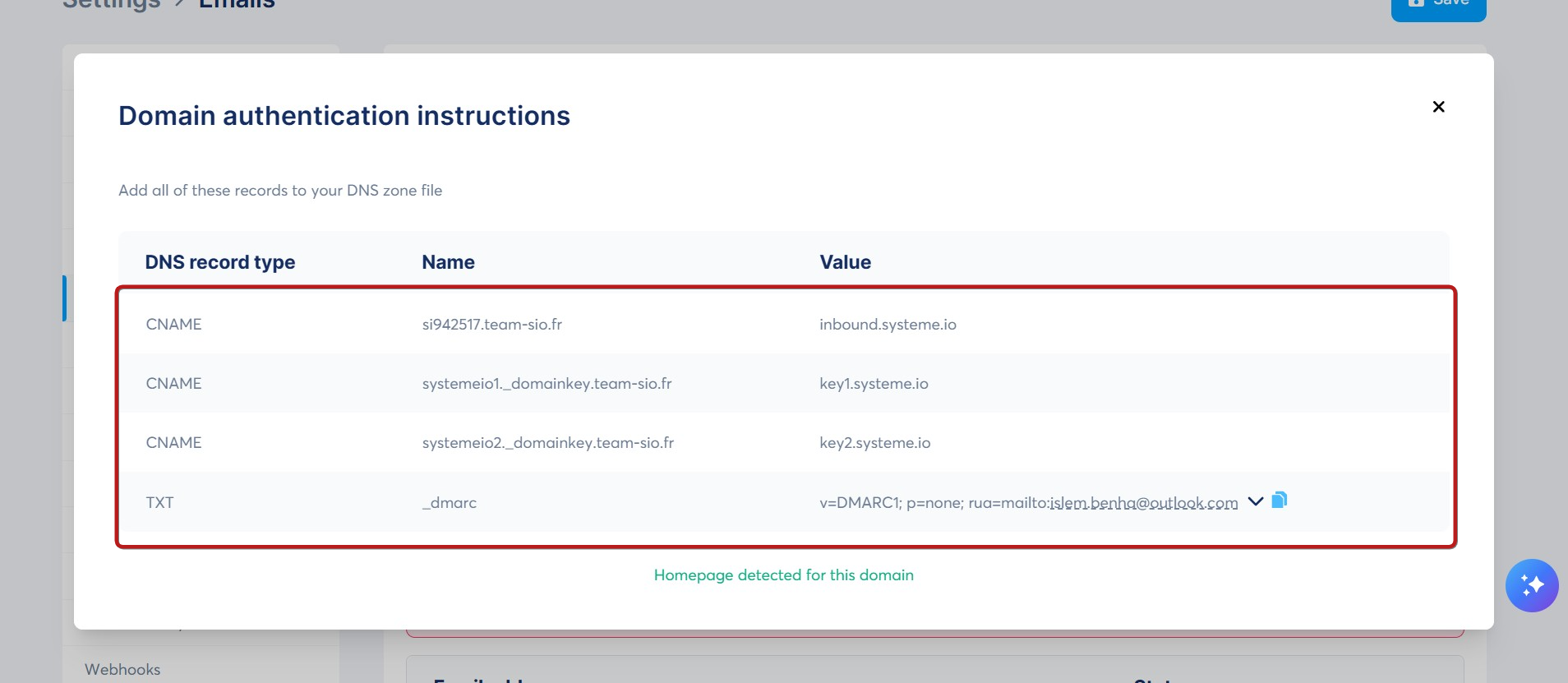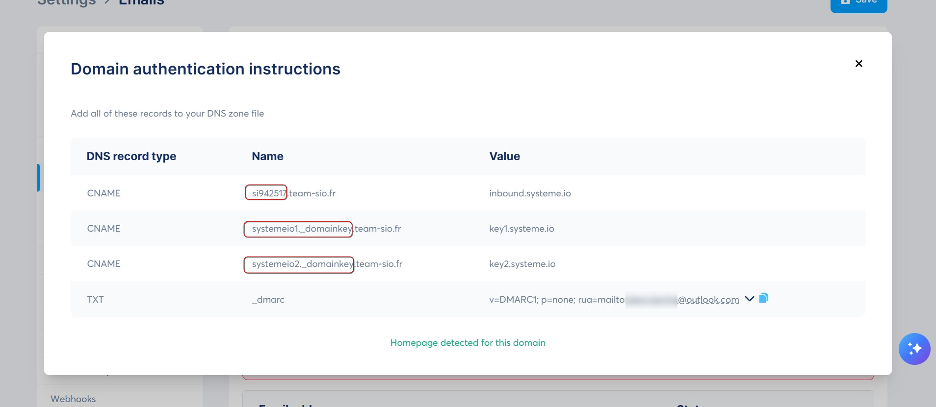 Názov: systemeio1._domainkey Hodnota: key1.systeme.io.